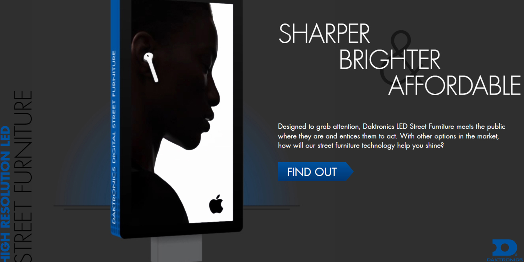 Daktronics has a legendary ability to produce perfect color that’s visible in the brightest sunlight and the darkest night. With its long-lasting contrast and adjustable brightness, Daktronics Street Furniture might be the only way to get people’s eyes off their phones and onto your advertiser’s messages.