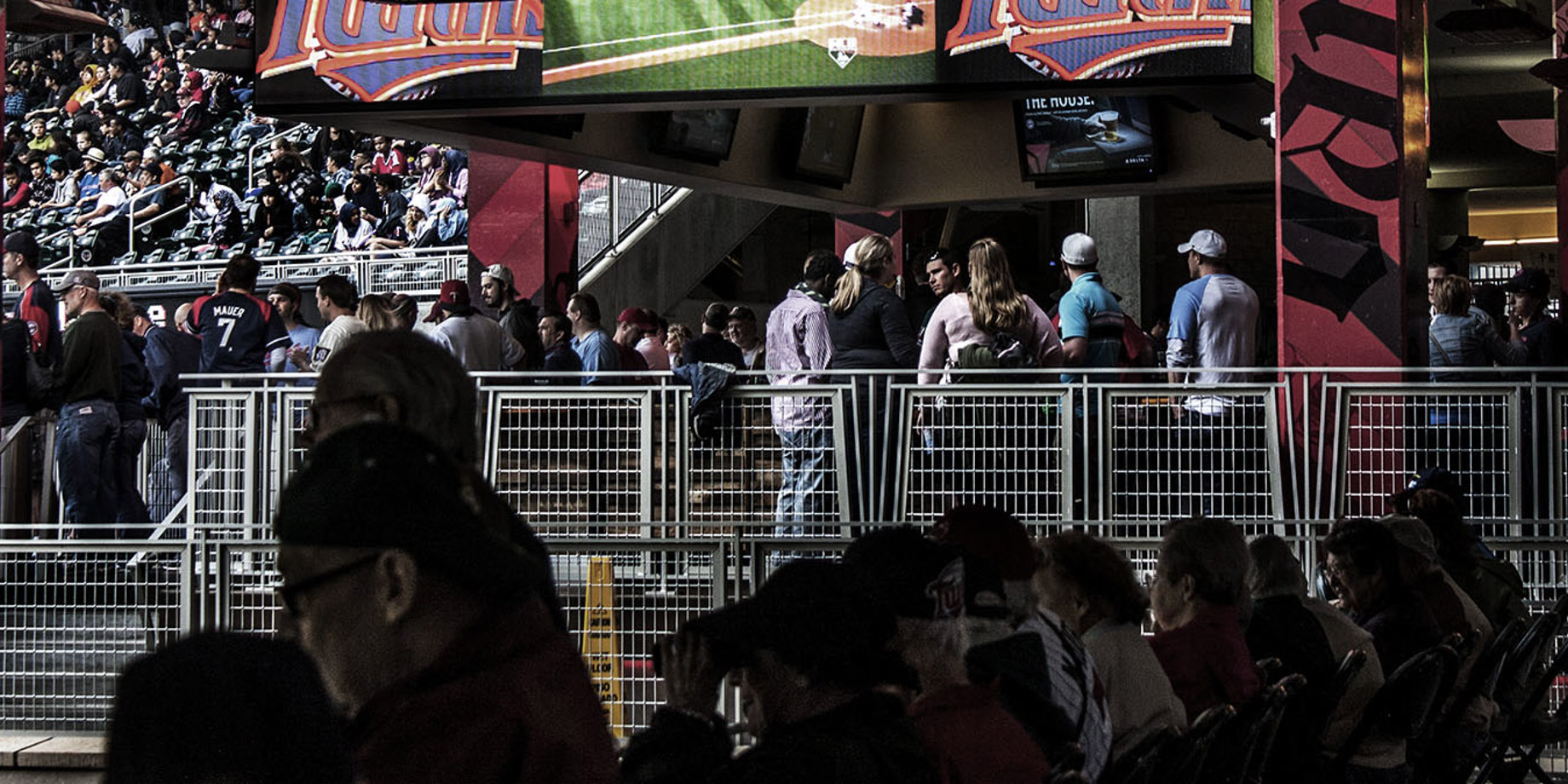 Sports bar experience meets modern tech. Bar displays create a cool environment for fans to watch the game in high resolution and celebrate with the crowd in the stands when synced game prompts show throughout the stadium.