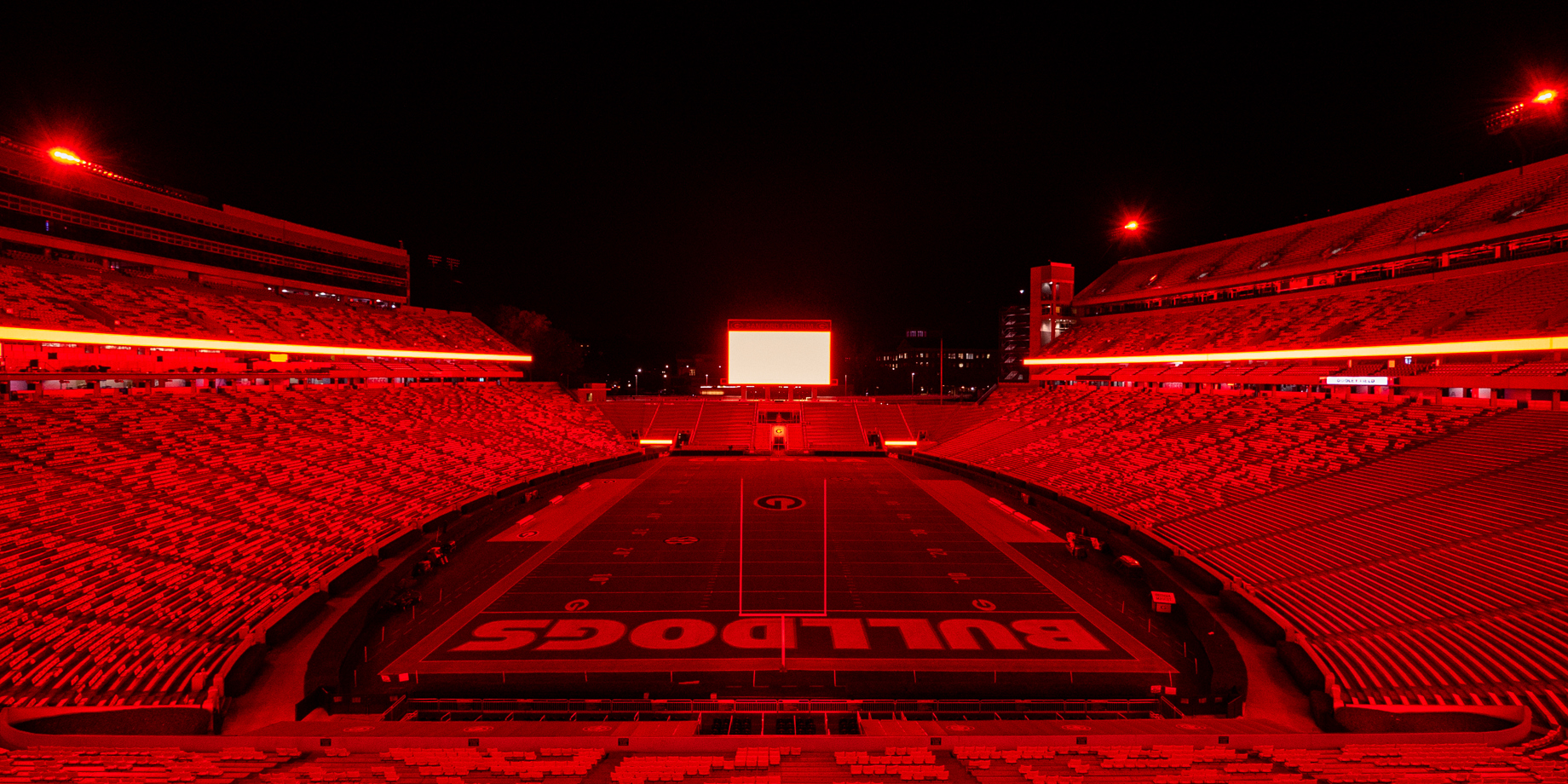 A: We talked about a new idea over the summer after we saw some other schools turning on their stadium lights in a certain color. We thought we could put a UGA spin on it and use all of our video boards and red lights. Now, every Friday night before a home game we turn on all the red lights in the stadium. People walk on the bridge, students will stop by and cars will stop just to take their photo with the lights. It gets them more amped up for game day, and now it’s just our little tradition that we do.
