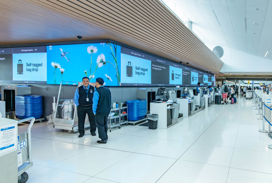 The flexibility of digital can also help airports adopt emerging technology. Digital displays at Denver International Airport communicate instructions for the new automated self-serve bag drop options, empowering travelers to take more control. This automation makes airport traffic flow more smoothly and quickly while providing a better experience.