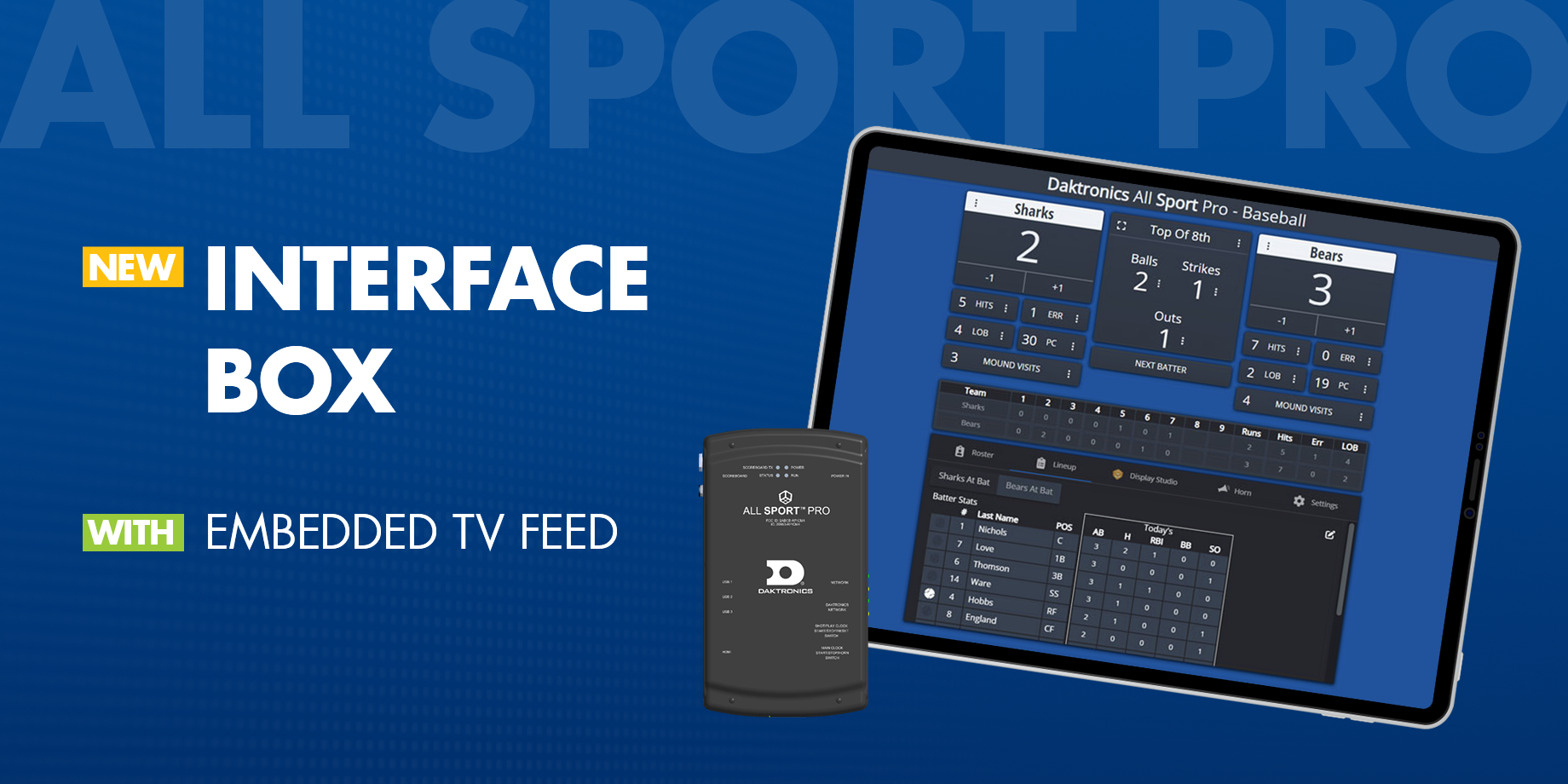 What’s more, is that in addition to the simplified set up, the redesign also includes a new TV output to support an external TV feed. All Sport Pro users can now send scoring and timing data, including player and team stats, to an external TV network without the need for additional integration hardware. With outputs to both nearby scoreboards and external networks, display operators can easily provide game information, not only to in-venue fans but also TV audiences through one, unified solution.