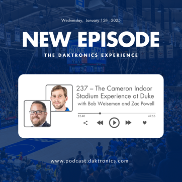 If you’re as fascinated by the intersection of technology and tradition as I am, you’ll love our full conversation. Bob and Zac offer deeper insights into the challenges, successes and future plans for Cameron Indoor Stadium. Be sure to check out the full episode of The Daktronics Experience podcast wherever you listen to podcasts!