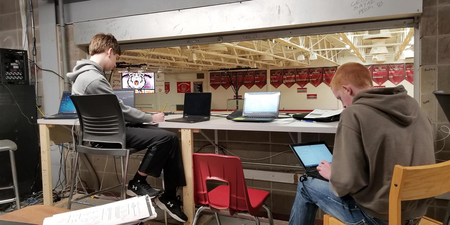 With a large video display on each end of the gymnasium and use of South Dakota State University’s football field for games, there are prime opportunities to test out their skills. “We’re running graphics, art and HTML is worked on in another class,” he continued. “It’s a great way to showcase our student body and their creativity. The kids actively come up with new ideas to show what they can do.”