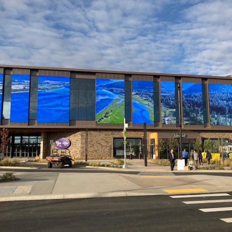 Similar to Barclays, El Corte Inglés in Spain (left image) and Northern Quest Resort & Casino in Spokane, Washington, (right image) have each implemented a unique organization of traditional-shaped displays. El Corte Inglés features two displays that actually have an angle to the left side matching the building architecture, but also implements a horizontal space between the two digital displays. And Northern Quest Resort & Casino added a nine-display configuration that combines for more than 2,500 square feet above the main entrance to their venue. Both can use the display independently or all together for a dynamic presentation.