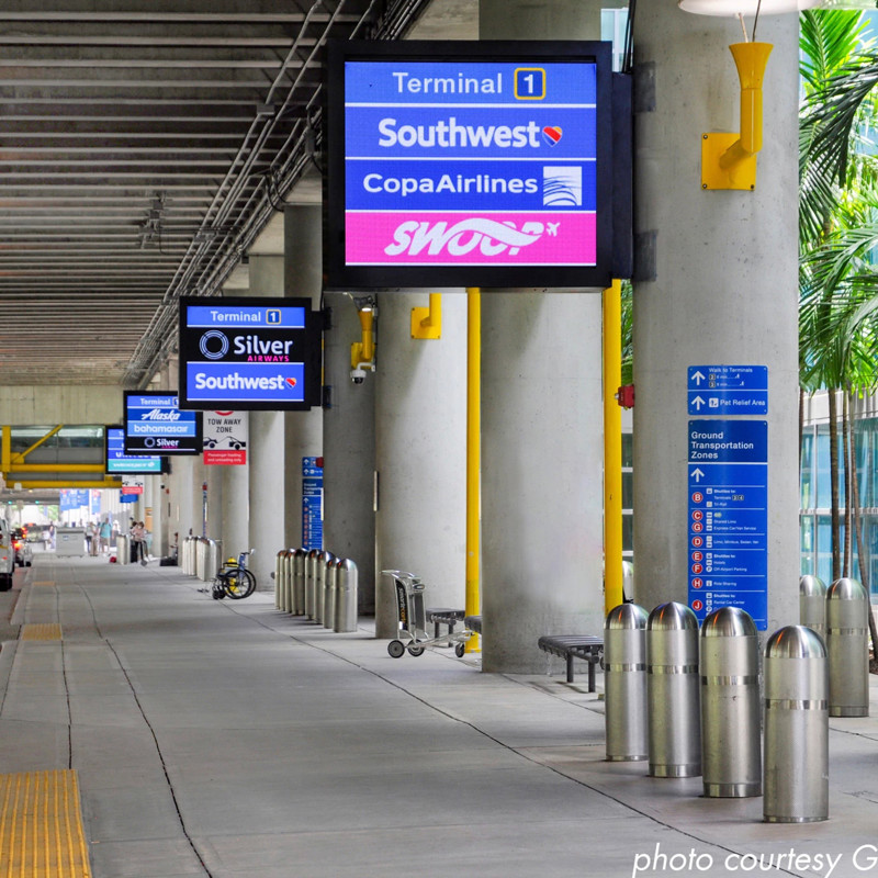 Parking guidance directs travelers to open spots, handicap accessible parking and electric plug-in, easing congestion and saving time. If they don’t need to park, curbside wayfinding creates an efficient pickup and drop-off experience with clear airline information and instructions.