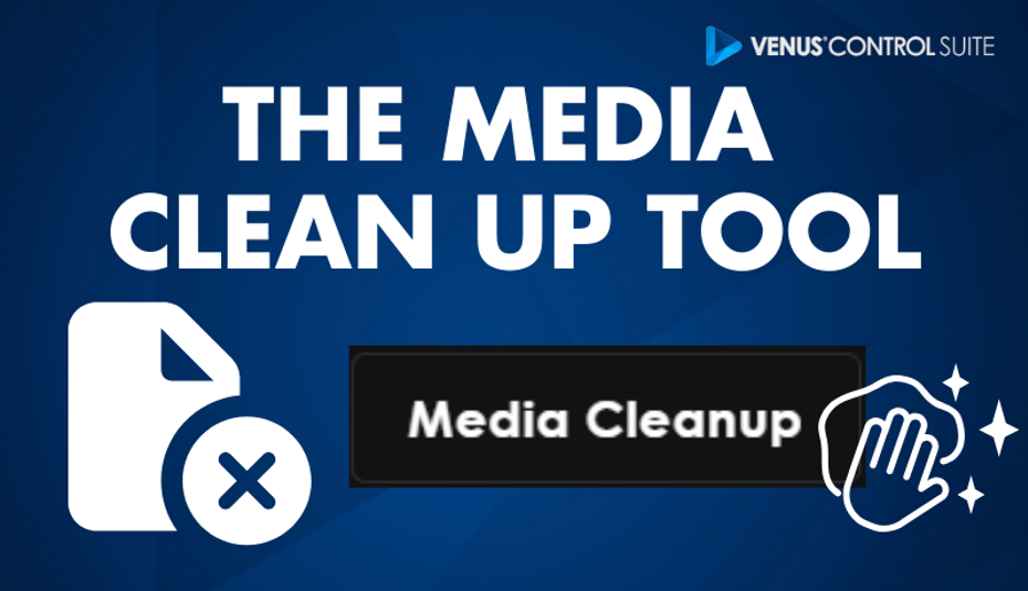 - Media Clean Up Tool – This tool will remove all unused media or unused and older than a date of your choosing. This is the quickest and easiest way to make sure your Venus Control Suite’s Media Library is focused on only active advertisements. For extra safety or retention policies, use the “Unused older than X” to ensure you keep the content of the last year if needed.