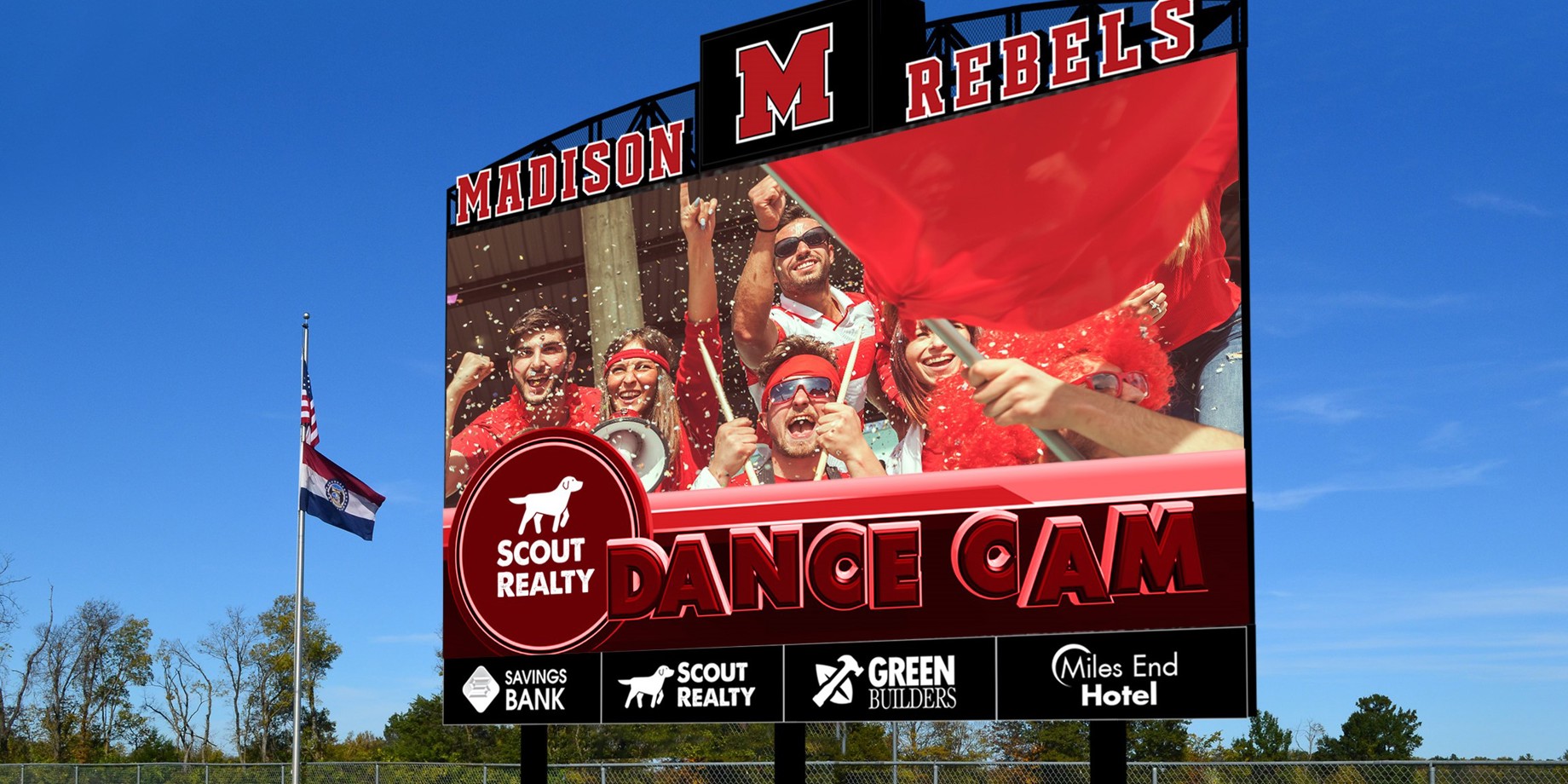 Video boards also allow a cleaner, more cohesive display of sponsor logos. Check out these ads at Madison High School.