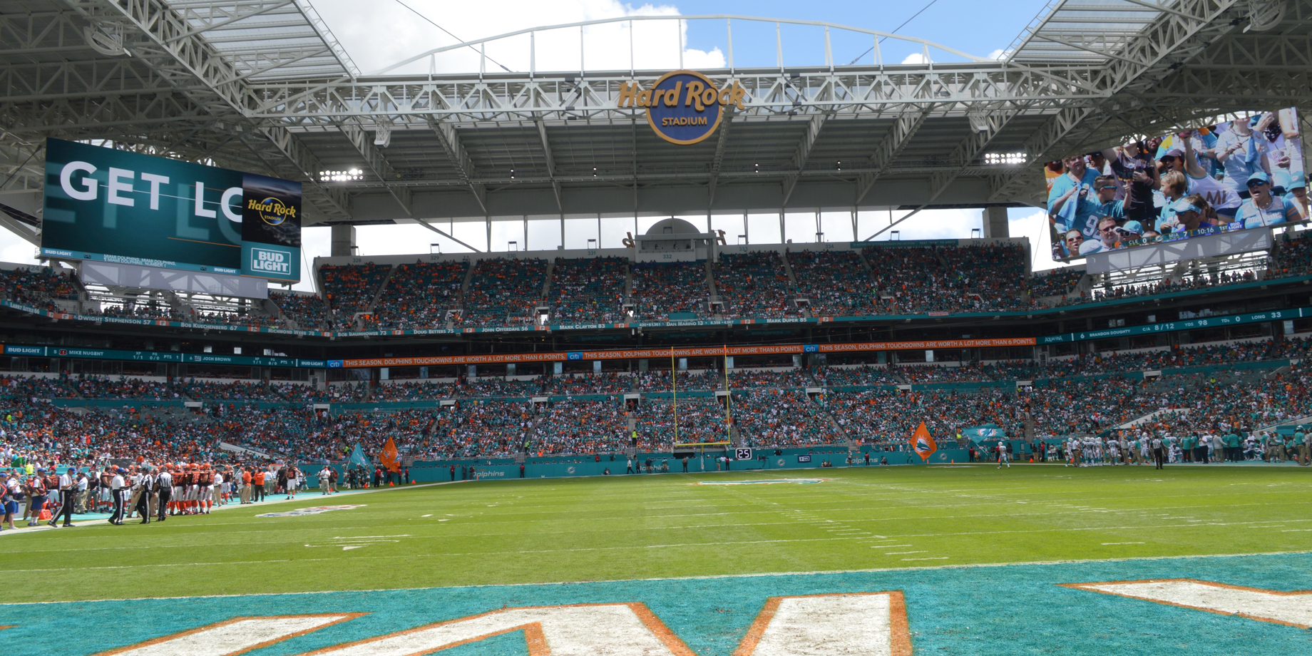 Over the years, Daktronics has installed additional displays for Hard Rock Stadium and the Miami Dolphins. This includes in 2019, when Daktronics installed the longest ribbon board in professional sports. At 2,105 feet in length, the 360-degree consecutive ribbon wraps around the entire seating fascia of the stadium.