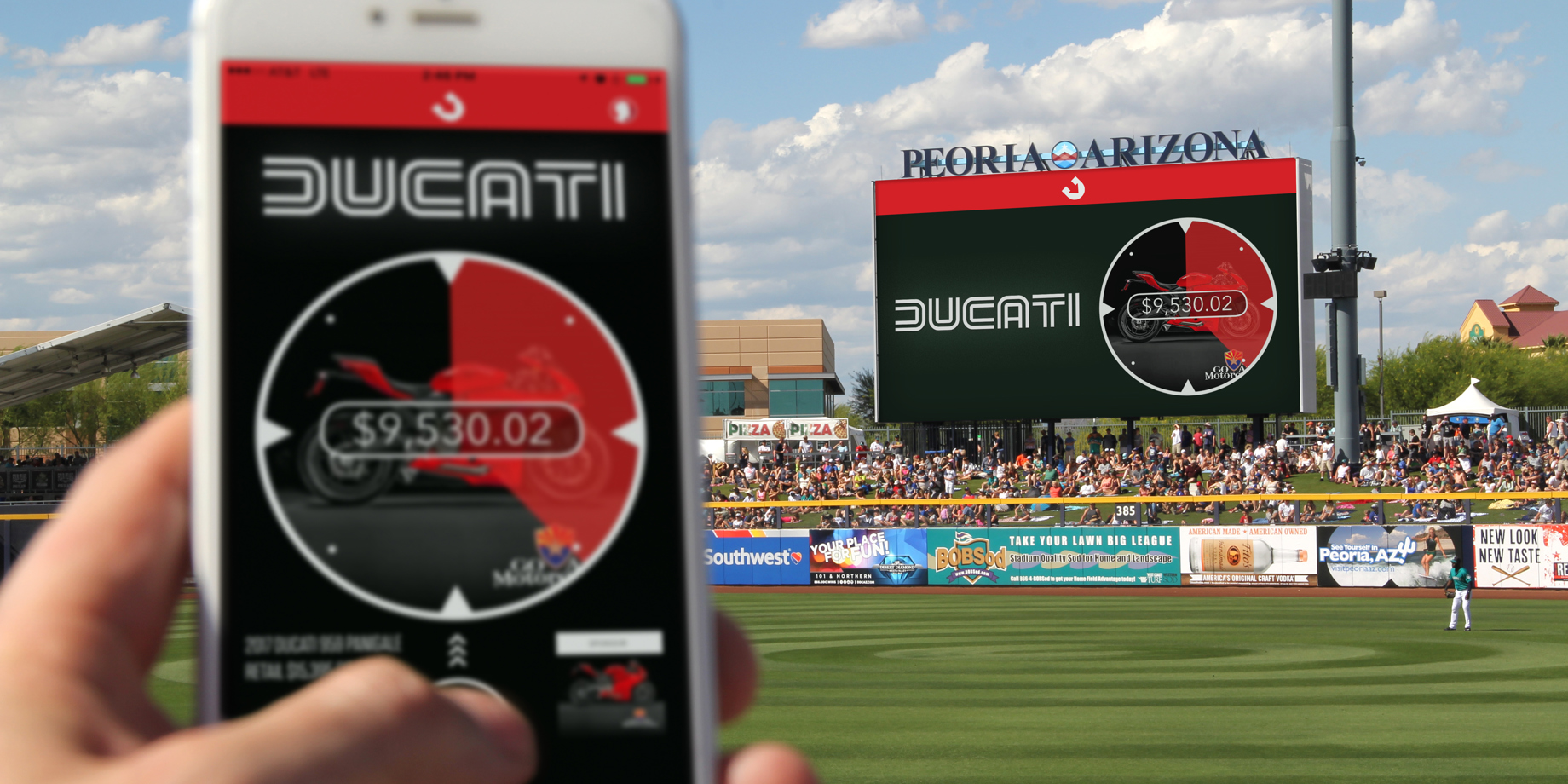 A. Fans can win premium items for a huge reduction in price. At the Cactus League, one fan walked away with a Ducati 959 Panigale for $3,904 (MSRP $15,395). This fan always wanted a Ducati but had never been able to afford it. DROPIT gave him the opportunity to purchase a luxury item at an affordable price. A Happy customer can equate to brand loyalty.