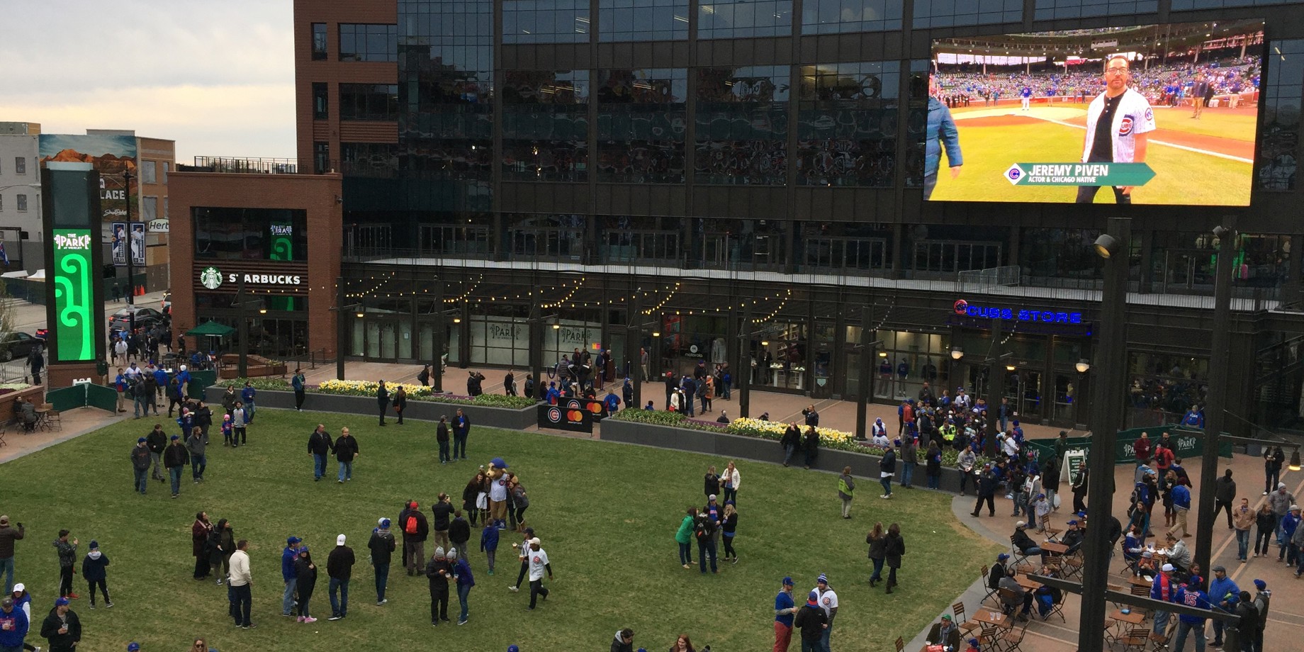Right next door to the stadium, or even inside the ballpark, entertainment districts and green spaces give fans room to move around and enjoy the game-day atmosphere. Displays in these areas allow fans to keep up with the game action happening on the field while also showing updates from around the league, even broadcasting divisional competition at another ballpark or showing the local team while playing on the road.
