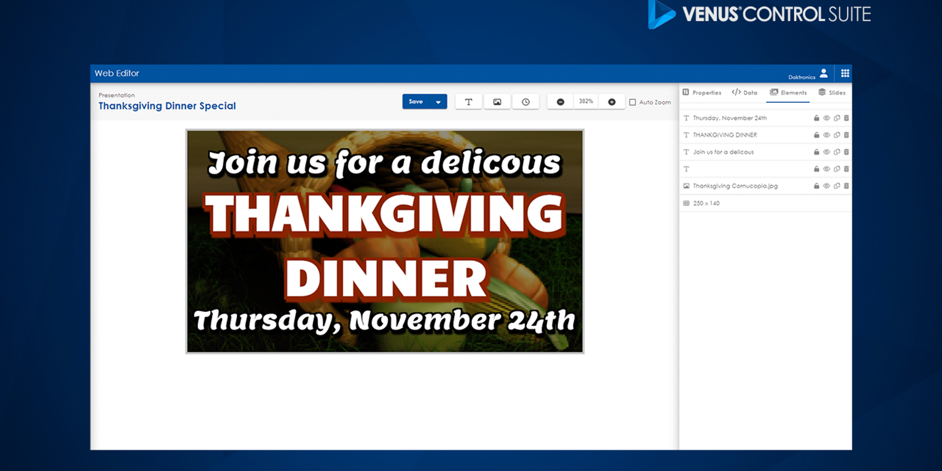 - Prep your display like you prep for a Thanksgiving meal. With the right ingredients – our Autumn Package, Fall and Winter Weather Package backgrounds and Thanksgiving-themed graphics – your content will be irresistible! These flexible packages give you the freedom to share what you’re grateful for, the food you plan to eat, or special holiday hours.