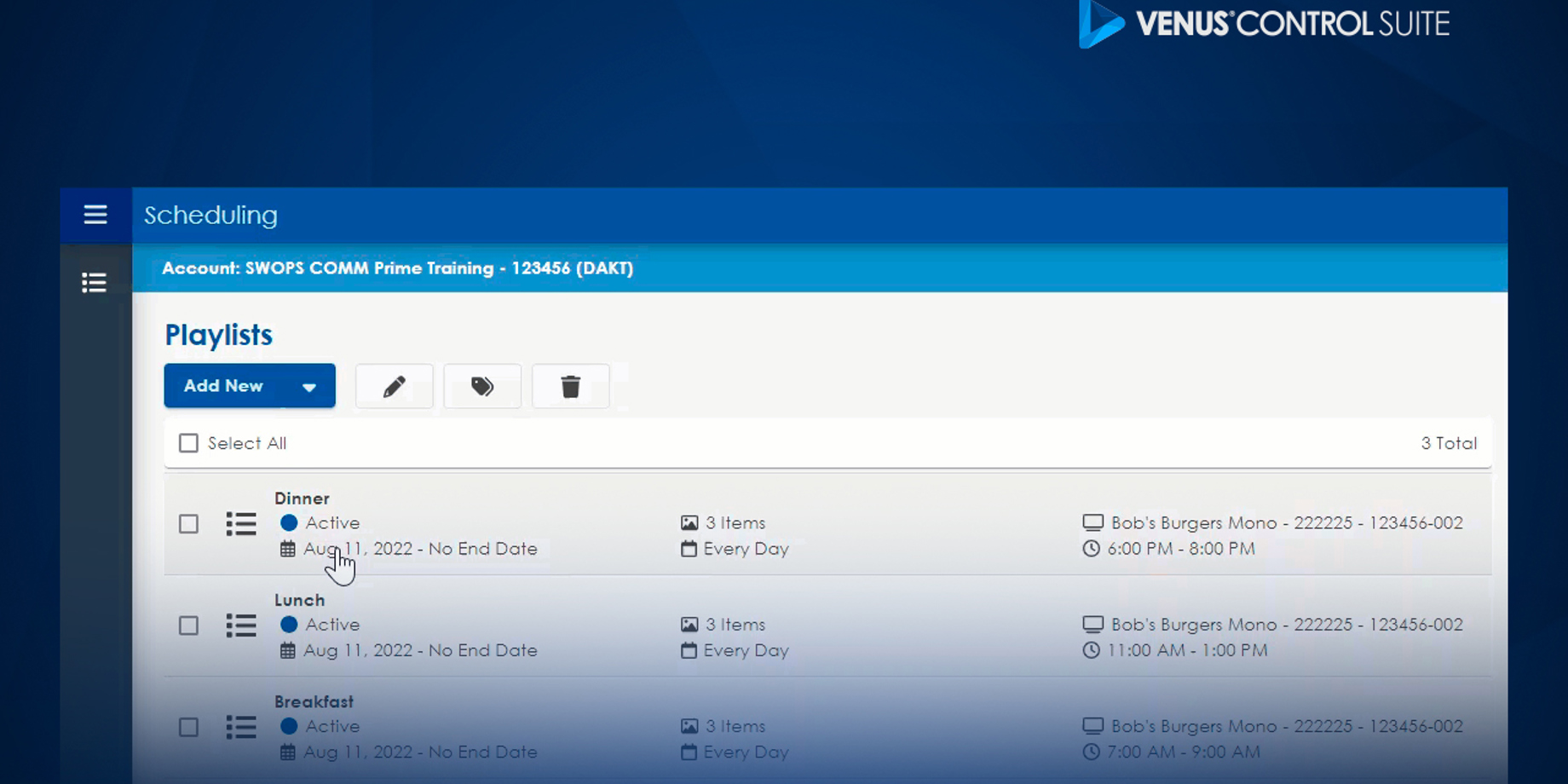 Venus Control Suite Scheduling just got easier with the new Multi-Select tool! Now, you can change as many playlist properties or file properties as you want simultaneously!