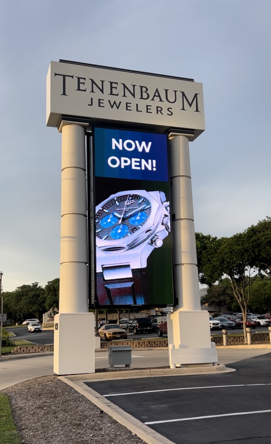 When the well-known Morretis retired from their jewelry business in San Antonio, Texas, Houston-based Tenenbaum Jewelers took over the high-end business. As part of the ongoing updates to the interior and exterior of the store, the jeweler updated their signage with a beautiful 8mm digital display to showcase their inventory.