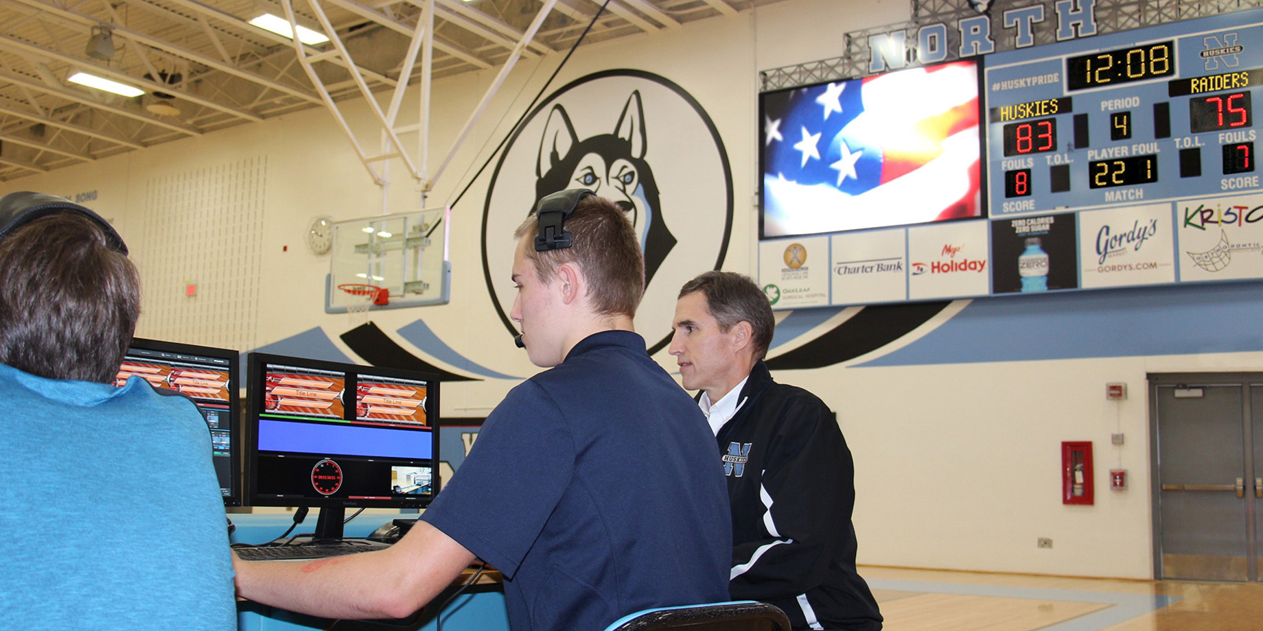 For any scoreboard, you need a controller operator to run the clock, keep score and start/stop time. If you have a video display, you will need either a display studio or Tricaster operator. These roles allow for a wide variety of tasks thanks to the option to arrange playlists. They will create content, import image file formats, produce prerecorded video with audio, update stats and post school announcements. Pre-produced videos, logos, commercials, streaming to the web, posting to social media, listing announcements and queuing graphics/animation give operators several areas to choose from.