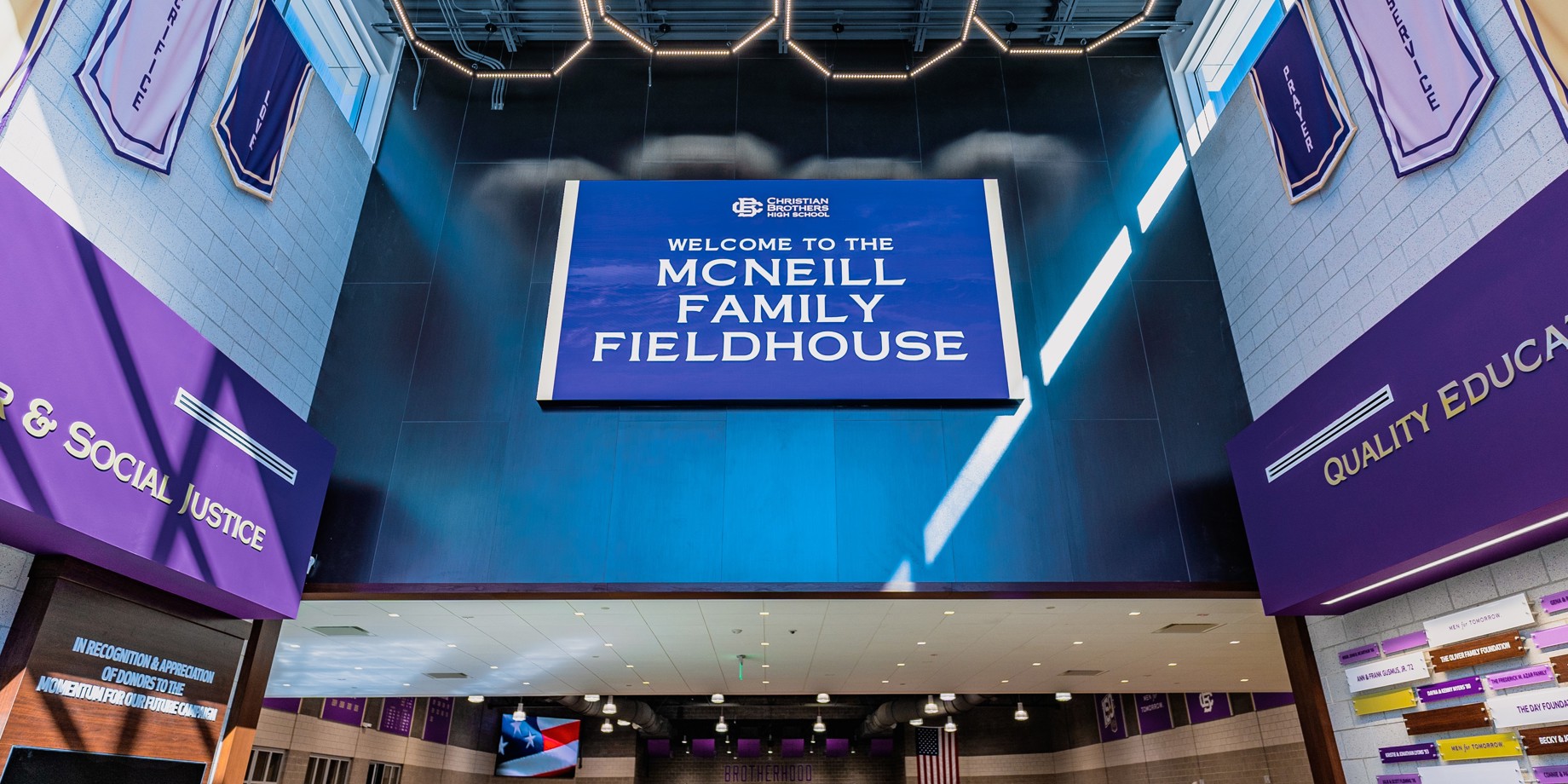 Being the only school in the Memphis area with high-quality indoor video displays, the school has lots of real estate for digital content. These screens allow them to give sponsors more screen time, welcome spectators to games, enhance the environment for prospective students, and build a dynamic gameday environment.