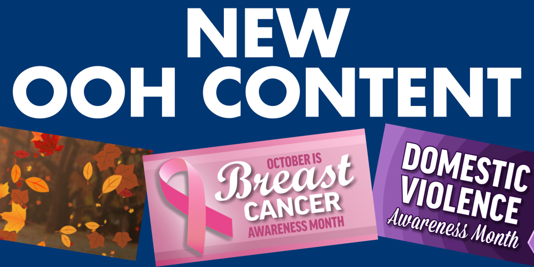 Don’t just use your digital billboard to promote your inventory or services. Devote space to public service announcements and causes important to the community. October is Breast Cancer Awareness month and Domestic Violence Awareness Month. Our digital artists offer you free Breast Cancer and Domestic Violence content to show your support for these important causes.