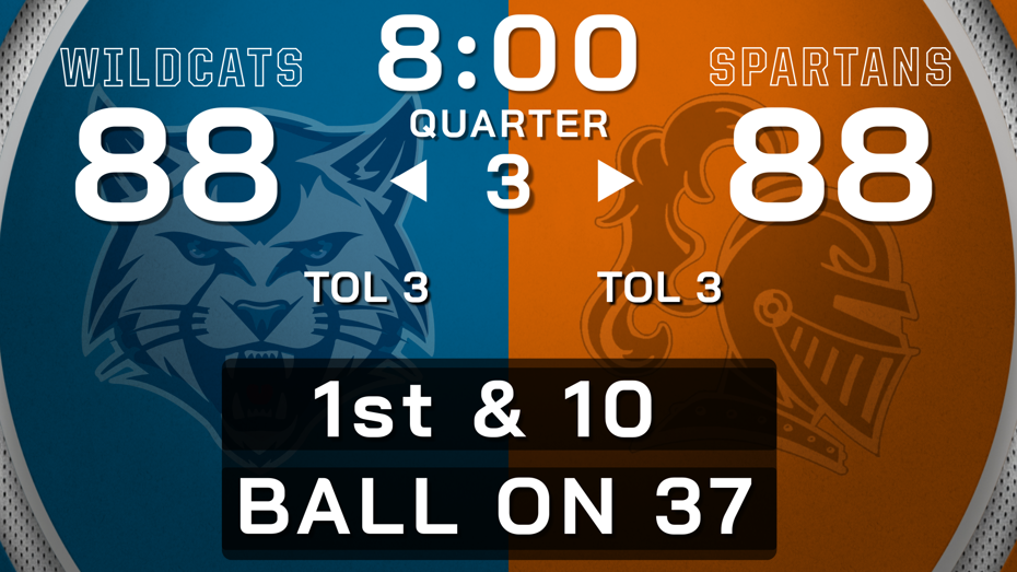 Contrasting colors will help your statistics stand out to the audience. For example, using a dark background with light text is easy to read so the crowd can focus on the game. Showcase your school colors to gain a home-field advantage and rouse school spirit.