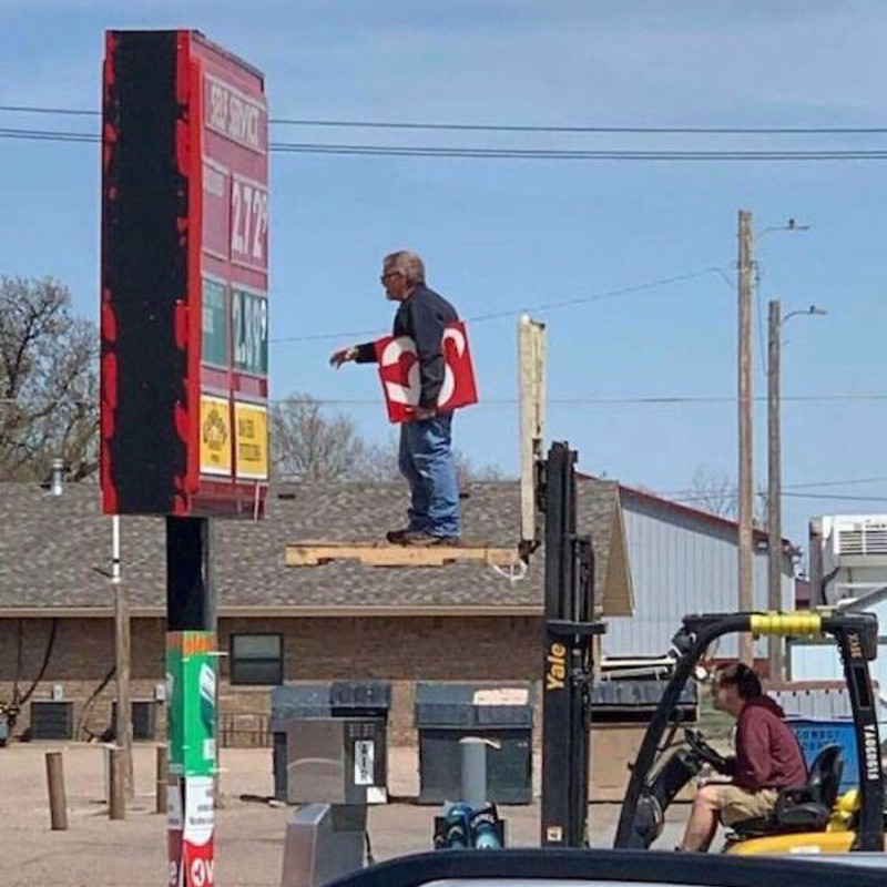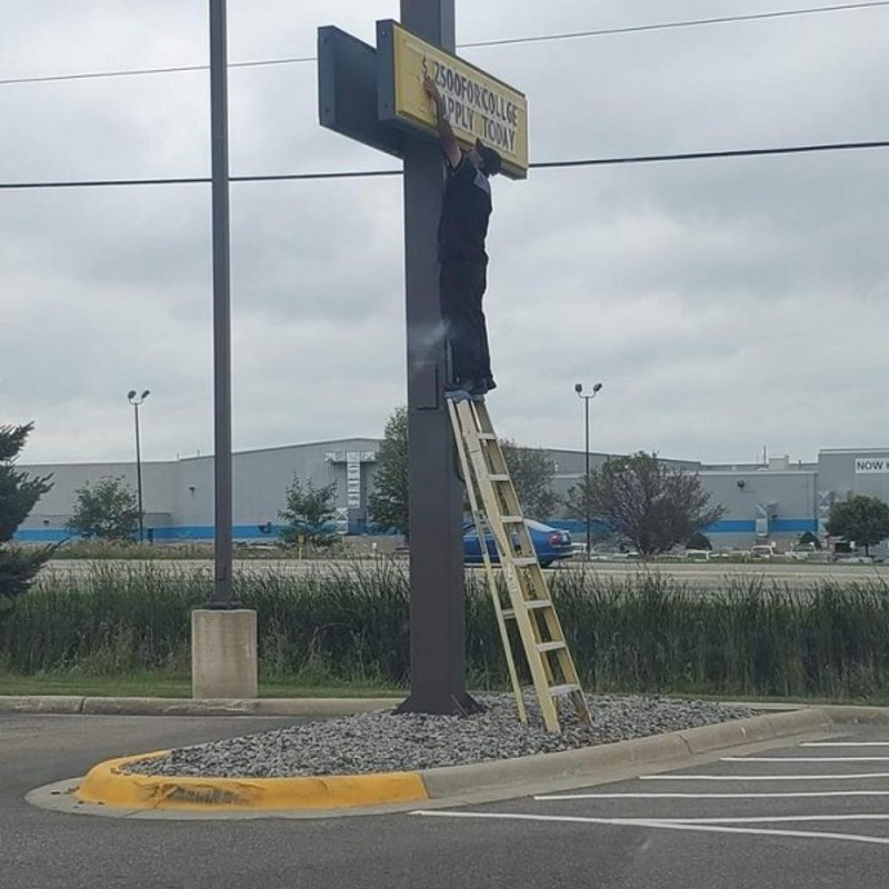 Safety is always an issue, and manual copy boards are notoriously difficult to update. We’ve spotted people changing out their signs in creative ways, and we’re always relieved when they don’t get hurt.