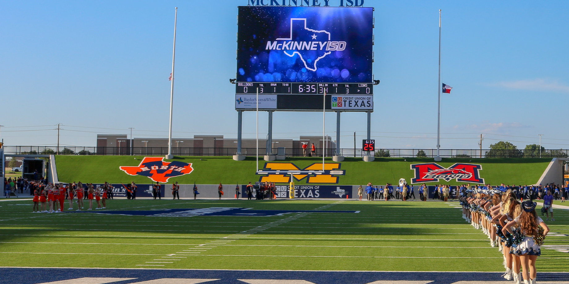 Prosper ISD, Allen ISD and McKinney ISD highlight some of the recent projects in Texas. Prosper ISD and McKinney ISD both feature 12,000-seat venues while Allen ISD has a stadium with 18,000 seats. These feature both audio and video components as Daktronics provides a turnkey solution for these stadiums.