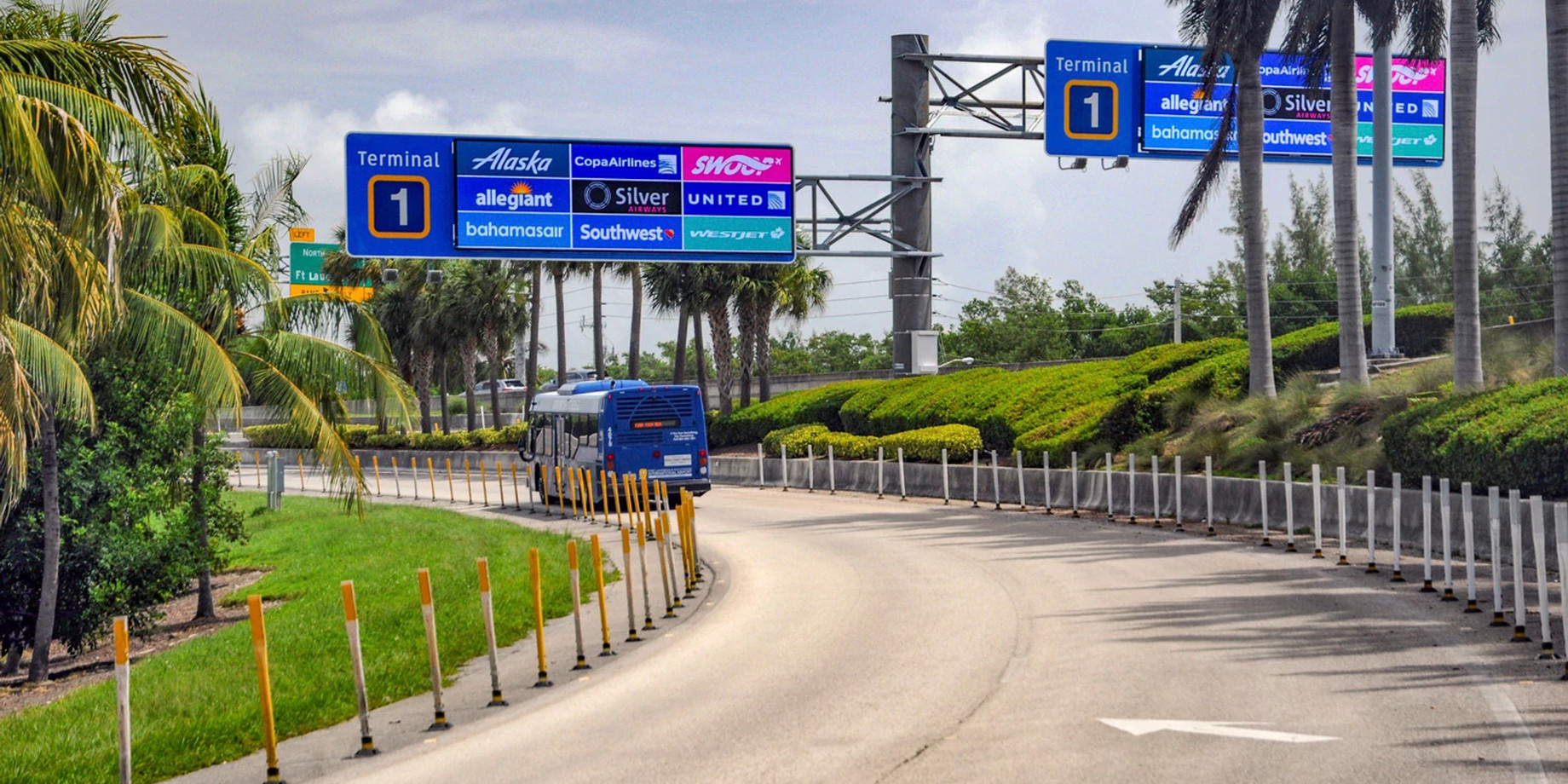 Navigating travelers to, from and around airports is more efficient with clear, changeable messages displayed on robust outdoor digital LED technology from Daktronics.