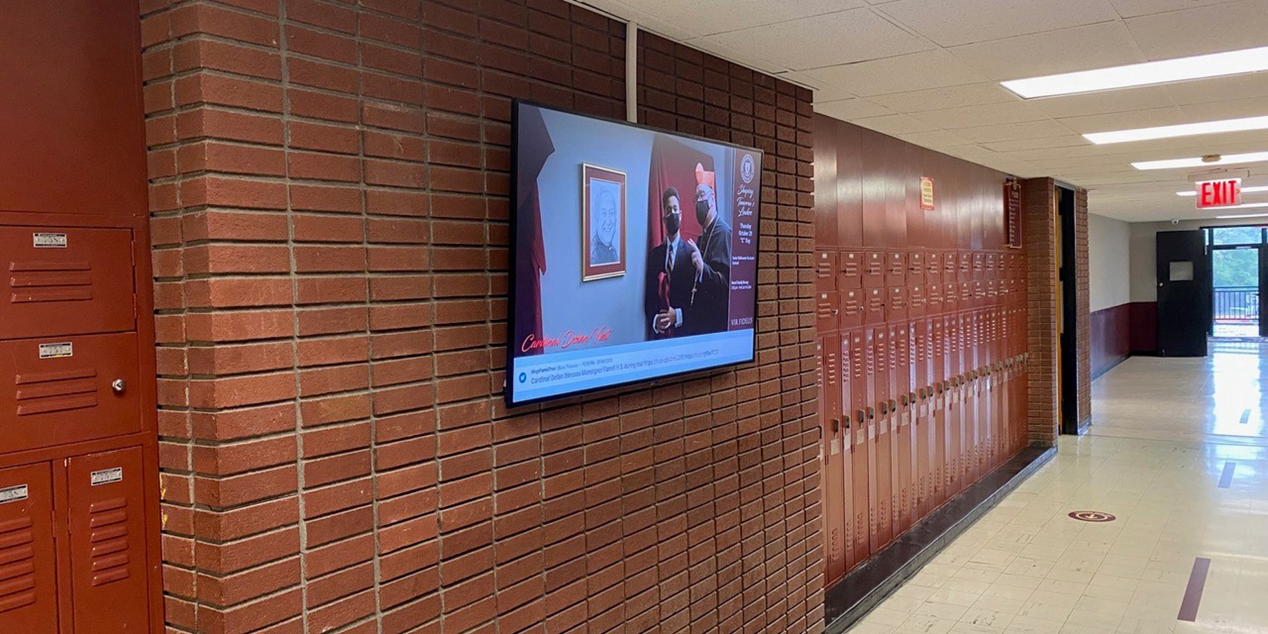 Monsignor Farrell High School uses eight digital signs to help faculty and students stay up to date, while adding a little excitement every day.