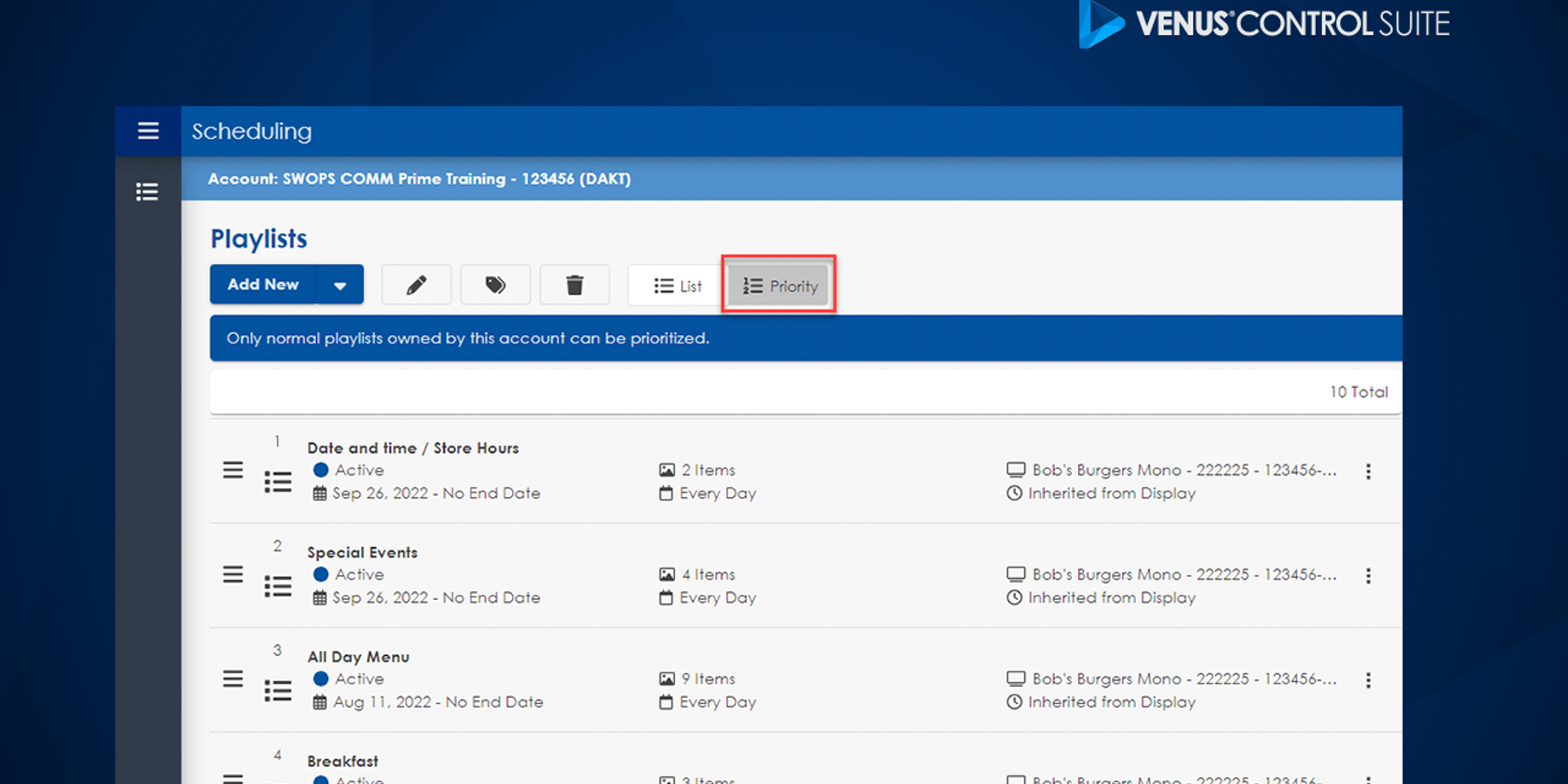 Your favorite, new Venus Control Suite feature is here! Take control of the order of playout between playlists by using the new Playlist Priority feature in the Scheduling App.