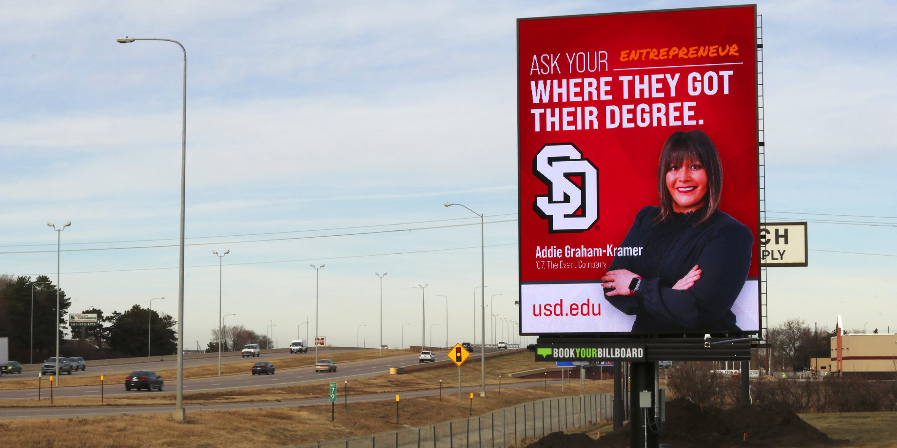 In late November, Book Your Billboard, a locally owned outdoor billboard company in Sioux Falls, South Dakota, installed a vertical billboard on Interstate 29. More than 60,000 vehicles pass by it every day. The custom size is 28 feet tall by 22 feet wide.