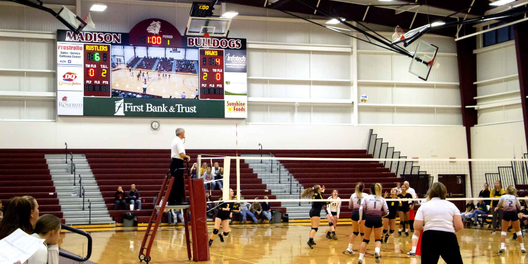 After Madison High School built a brand-new sports facility, the budget only allowed for the installation of three static digit scoreboards. MHS’s athletic director, Bud Postma, wanted better for his school and took matters into his own hands. He told the school board to keep that money and use it somewhere else – he would raise the money for a video board, and then use the video board to raise more revenue.