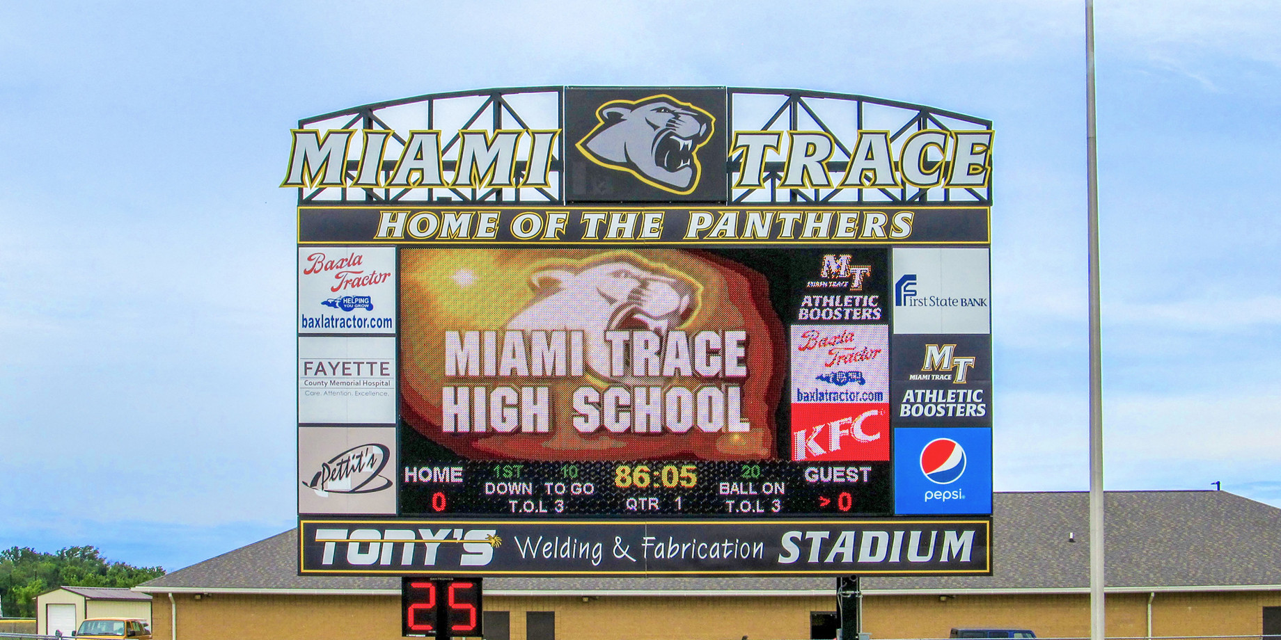 Miami Trace has a flourishing media program, spearheaded by Laura Hottinger. The high school installed an impressive video display a year ago and tasked Laura with its operations and content. School is the place for education, and she and her students jumped in head first. Within the first year of operations, they’ve created an impressive list of content for the display:
