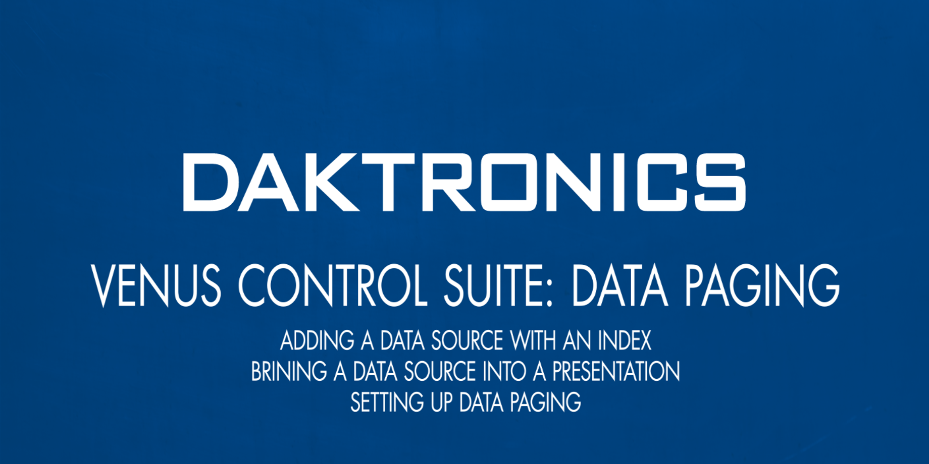 Categories: Venus Control Suite Training