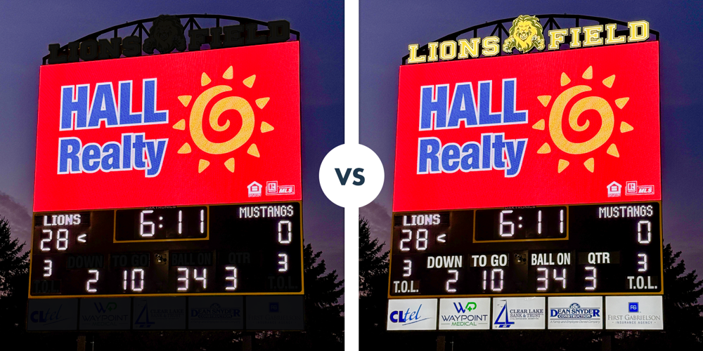 Friday night lights can be bright, and LED scoreboards and video boards deliver vibrant motion and color. But without illumination, captions and sponsor panels can fade into the background. Fans miss game-critical info, and sponsors lose visibility.