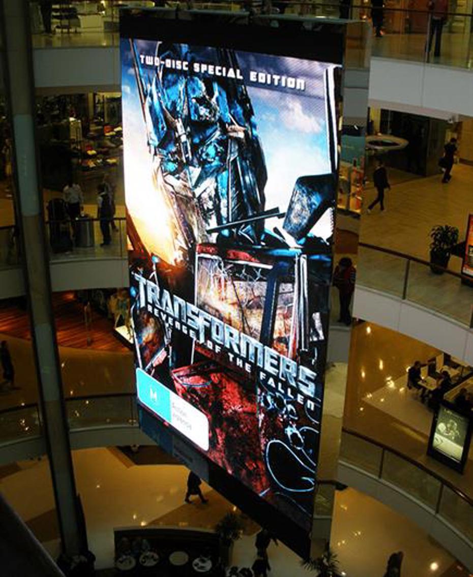 Featuring a sleek, lightweight design, our double-sided rotating LED banners full-black LED technology are ideal for concourses or similar atrium-style environments. This popular video solution for shopping center spaces is available in a variety of pixel pitches and promises spectacular reliability and outstanding Daktronics image quality.