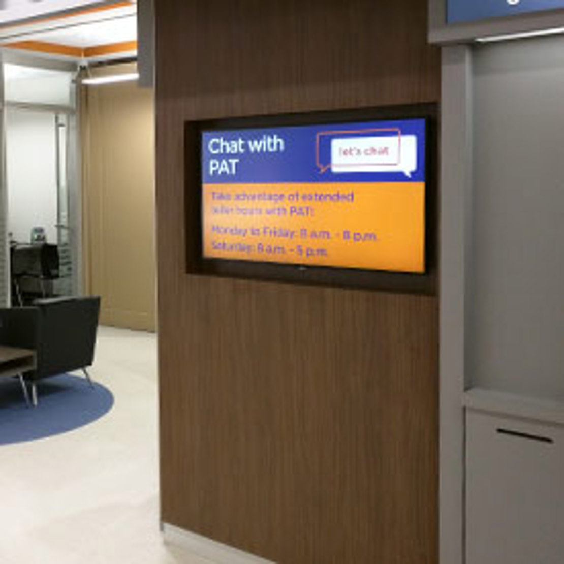 Digital displays are a cost-effective way to better communicate with your customers. Using a combination of vivid imagery and video informs your customers of the depth and breadth of products and services offered. Whether it's seasonal promotions, or constantly changing lending rates, editing content is fast, simple, and immediately visible across all branches.