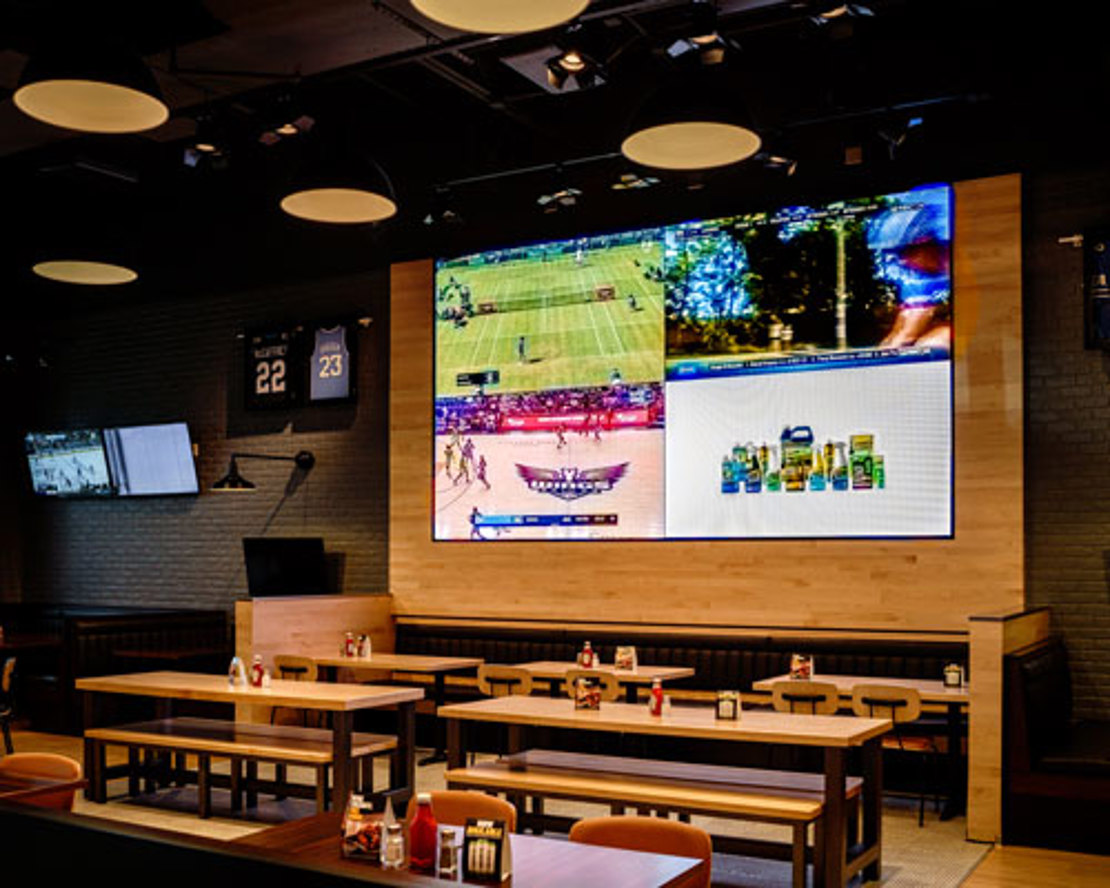 Provide entertainment in your dining areas by showing branded content or live-streamed events on a video wall.
