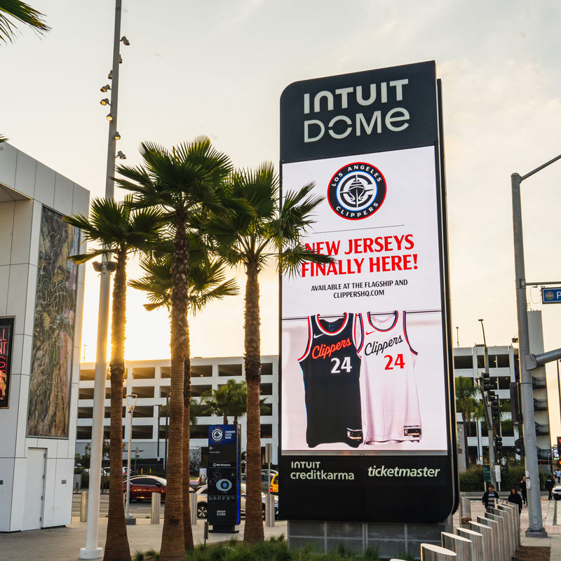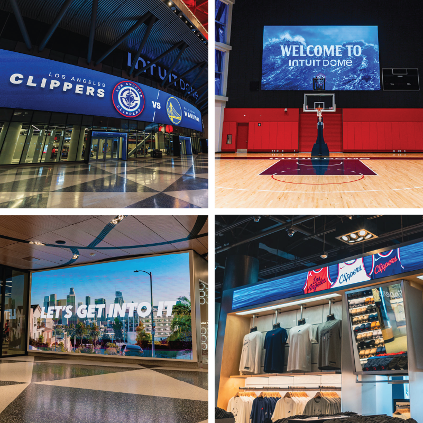 In the main lobby, a massive 22-foot by 190-foot curved display serves as a major attraction and a popular photo spot for fans. The Clippers' flagship store features six high-resolution COB (Chip On Board) displays to showcase merchandise. A promotional area, Court B, features a large 4K display and traditional scoreboards.