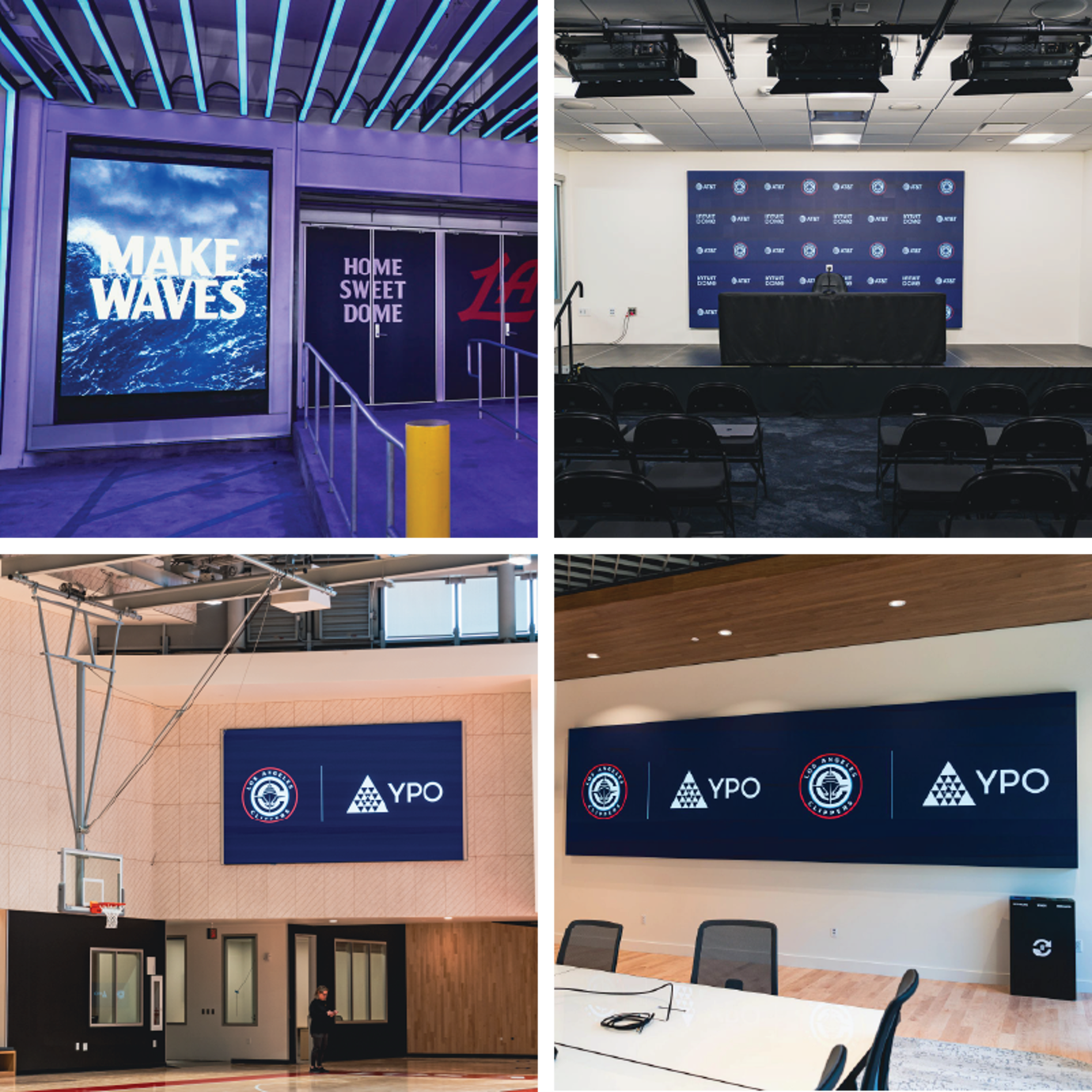 Additional displays are strategically placed in team areas outside the bowl. These include displays at the player entrance, media interview room, practice court, locker room and team conference room, providing a consistent visual experience for team personnel.