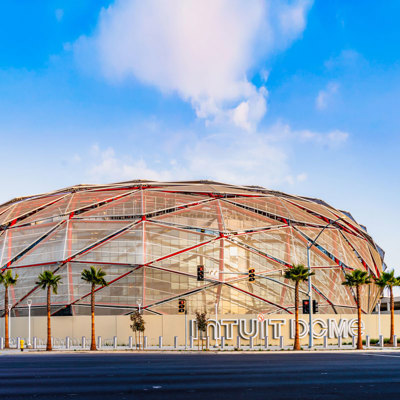 This technologically advanced and basketball-obsessed arena, entertainment venue and outdoor plaza delivers a uniquely intimate and intense experience that redefines what it means to be the best arena in the world. The massive LED halo is almost a full acre of scoreboard that creates the ultimate fan experience at Intuit Dome.