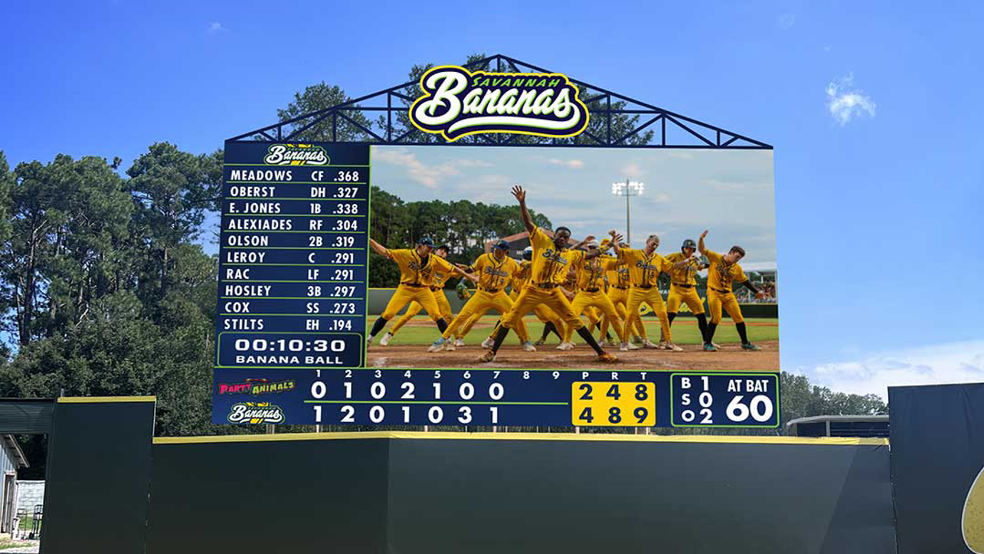 Lighting up the outfield, the Bananas' new display will measure more than 26 feet high by 47 feet wide.