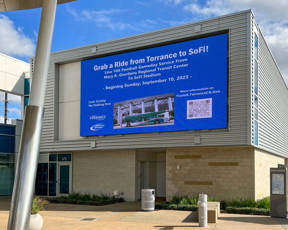 Daktronics enhances the efficiency and experience of public transit hubs with innovative and reliable display technology. Our high-resolution LED displays provide real-time updates on schedules, routes, and service changes, ensuring travelers are well-informed. Designed to withstand harsh conditions, our durable indoor and outdoor displays deliver clear and reliable information at bus stops, train stations, and transit hubs.
