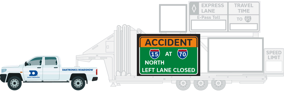 The Daktronics Roadshow brings the latest in transportation display technology directly to you. Our mobile demonstration trailer is equipped with cutting-edge dynamic message signs, offering a powerful, hands-on experience that allows you to see, touch, and interact with our LED technology in real time.