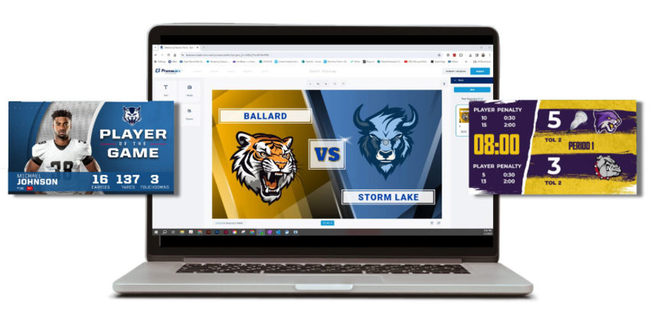 Design and deliver branded game-day content templates that match your team’s identity and elevate your presentation.