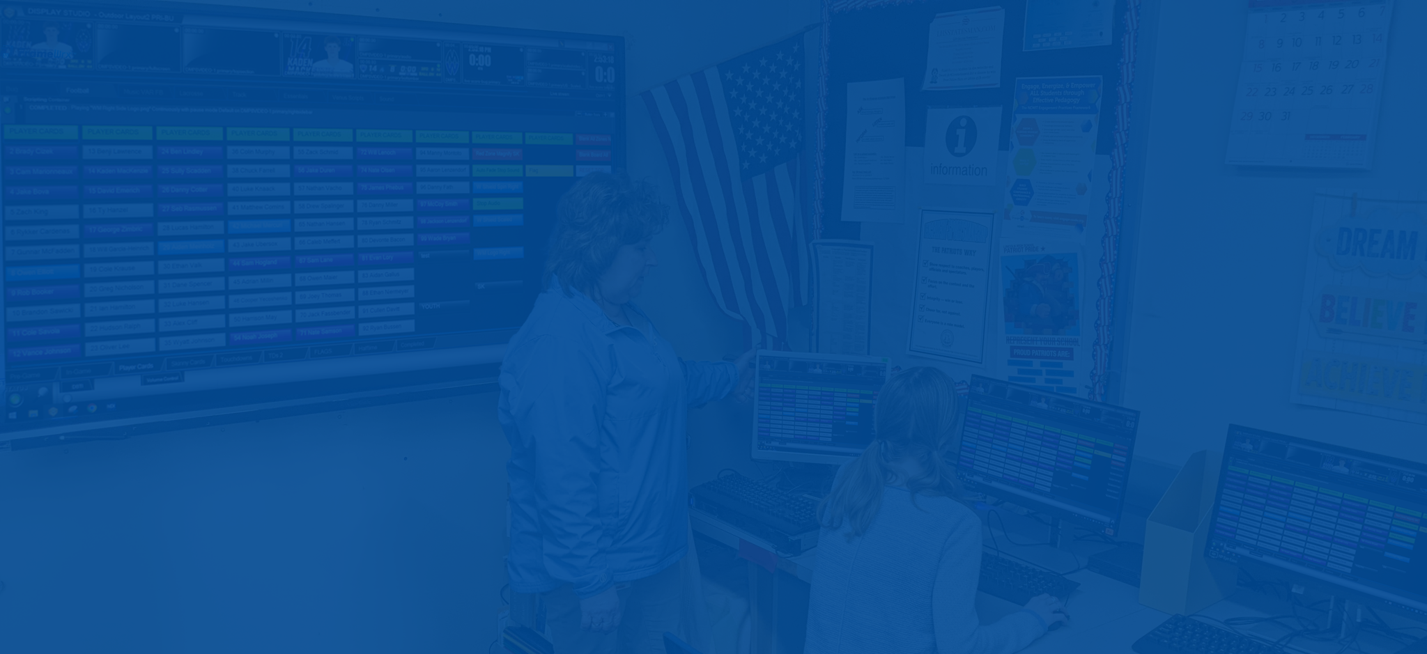 The Daktronics Show Control Education Edition provides an effective method for instructing multiple students on video display control software and best practices in a classroom setting. A single server unit hosts 15 virtual machines that can be accessed from various school-issued devices connected to the facility's network. Several video outputs allow for group content review.