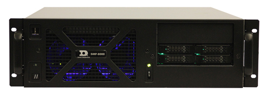 The DMP-8000 is a Daktronics digital media player, which, when combined with a digital display control system such as Venus Control Suite or Show Control, can be used in both scheduled and live display control scenarios to distribute graphics, animations, live video, real-time data, and other types of creative content to a digital display network. Within a display system, the DMP-8000 dynamically composites content onto a video output to deliver playback to a single display or multiple displays in a digital display network.
