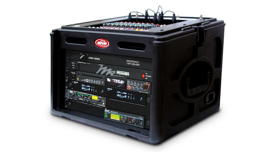 The Sportsound SSR-200 rack is a complete portable audio control system that is ideal for both outdoor and indoor sports venues for full audio control capabilities. The base level configuration includes the Daktronics Sports Announcers Interface, professional CD player, and Wireless Handheld Microphone. Numerous upgradable options are available such as In-Ear Monitor systems, Hearing Assist System and High Gain Wireless Microphone Antennas.